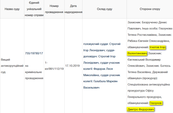 Уголовное производство касается периода 2013-2014 годов, когда Глазунов и Игнатов договорились о заключении нескольких сомнительных соглашений на 43,5 млн грн.